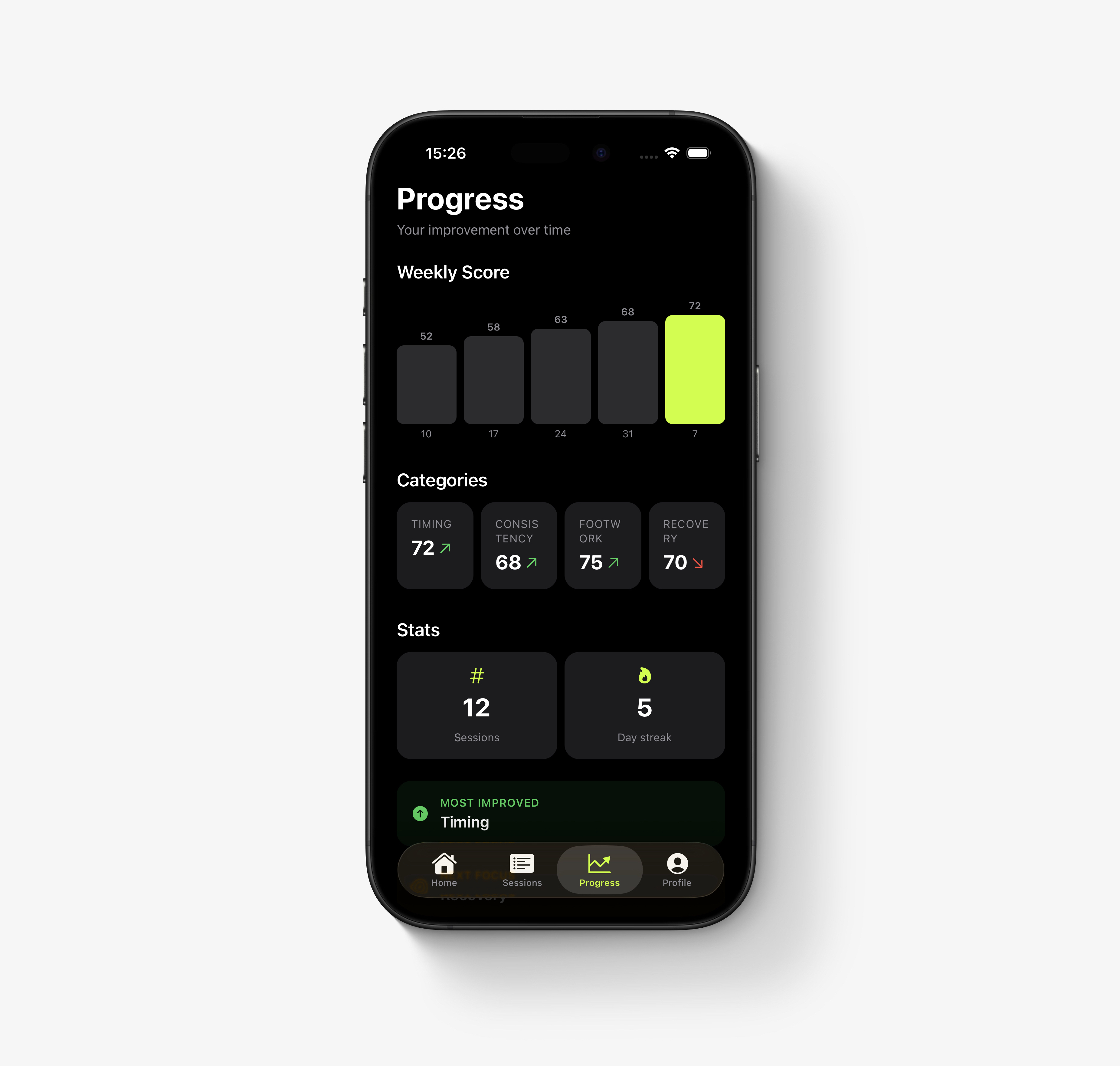 Over time, see how your game improves and stay focused on key areas for your next session.