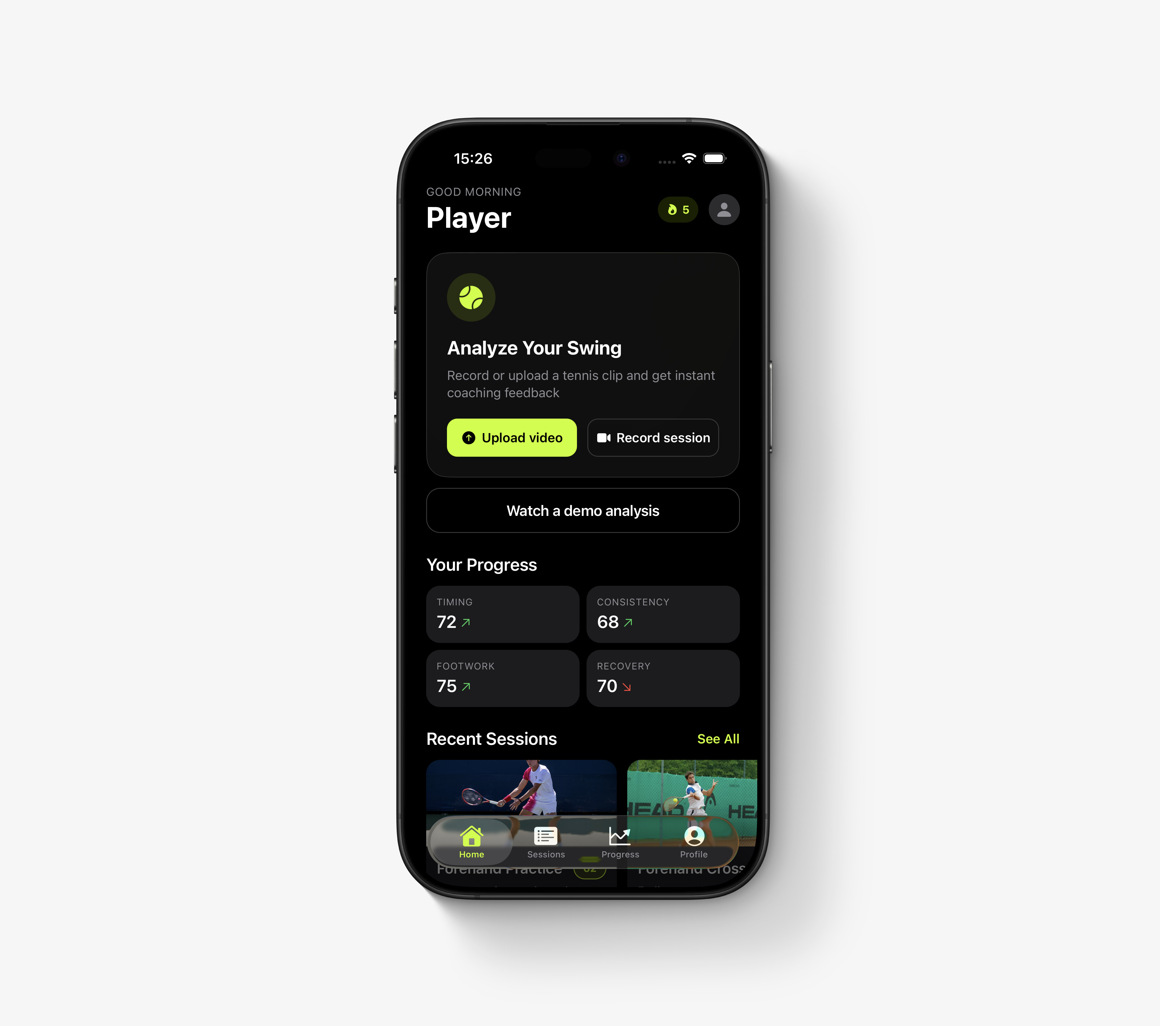 A personal tennis coach in your pocket. Record your game, get instant feedback, and track your progress with AI-powered video analysis.